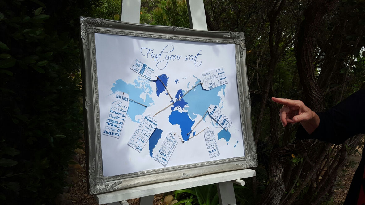 Wedding seating plan around the world map